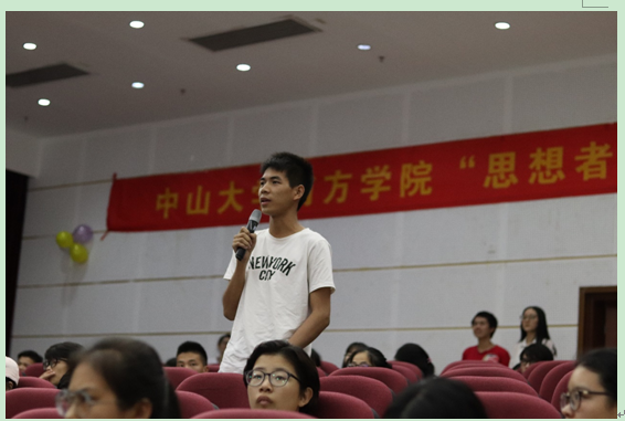 随着全体起立奏唱中山大学南方学院校歌,大会拉开了序幕。首先,由王丽荣主任上台致辞。她先是表达了对筹备思想者团队的老师们以及为这个团队付出的学生们的感谢。其次,王主任指出,思想者就是通过个体的读书、思维的碰撞、头脑的风暴开启大家的思维。她还表示,在教学中,老师是主角;在这个论坛当中,学生是主角,这也意味着思想者开创了我校有特色的融合的学习机会。我们不满足于过去课堂的惯例,而是希望培养学生探究性思维,让同学积极参与。